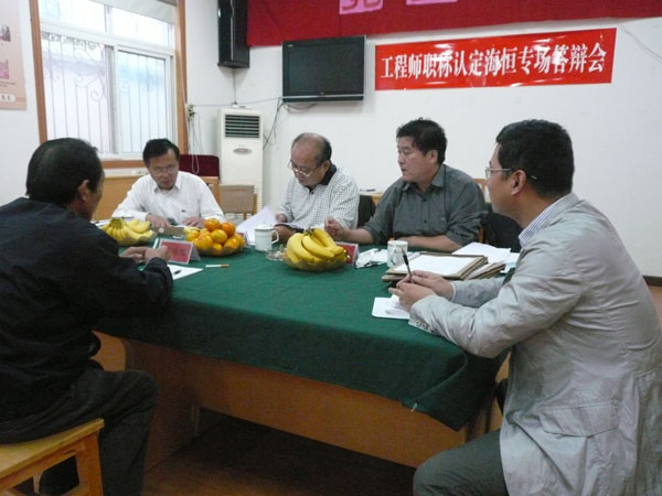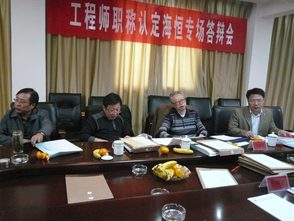 2011年11月3日,泰州市工业工程中级专业技术资格认定海恒专场答辩会在我厂举行,专家组对参与认定的人员进行了严格的评审,只有专业知识过硬,现场发挥出色的人员才能通过专家的认可,最终,陈益民等26名同志通过了此次职称认定,获得机械学科中级工程师资格,通过人数创历届之最。